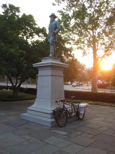 Though not really bicycle advocacy, I distribute water, clothing, food and what-ever to the homeless people I encounter on my travels. This morning I encountered one of “regularsâ€? who had decided that the middle of the Custis trail (the main bicycle/pedestrian artery into the city) was the best place for him to be sleeping. Nothing I could do would convince him this was not a good thing. I left one of my flashy lights 15 feet in front of him so people would know to avoid him. I left him a bottle of water in case he was thirsty when he woke up. Not sure yet how that turned out. I did what I could.