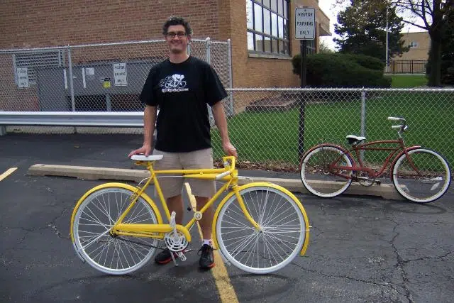 I got a job at Trader Joe’s in July of 2008. I decided to ride to work for my work-out using my homemade cruiser. I had done two triathlons and I was burned out on road bikes and trying to stay fit by going to the gym.